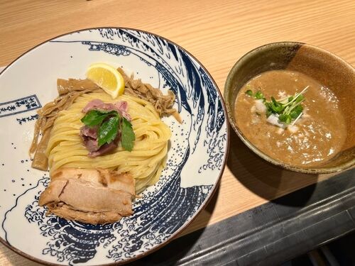 土曜日の朝、おはようございます。今朝は限定5食の🦐伊勢海老つけ麺🍜目指して、カミさんと市川あけどやへ。すると開店1時間前、ポールポジションでした❣️