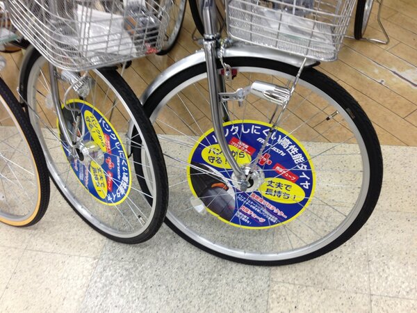 ニッケコルトンのダイエーなう~最近の自転車はパンクし難いタイヤがあるんですね。特徴は肉厚。なんか親近感(笑) pic.twitter.com/qRn0R8ViZD