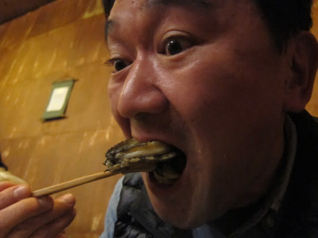 私も10年間麺上げの画像を撮ってますが、ラーメン屋さんで、鮑を上げて画像を撮ったのは初めての経験。