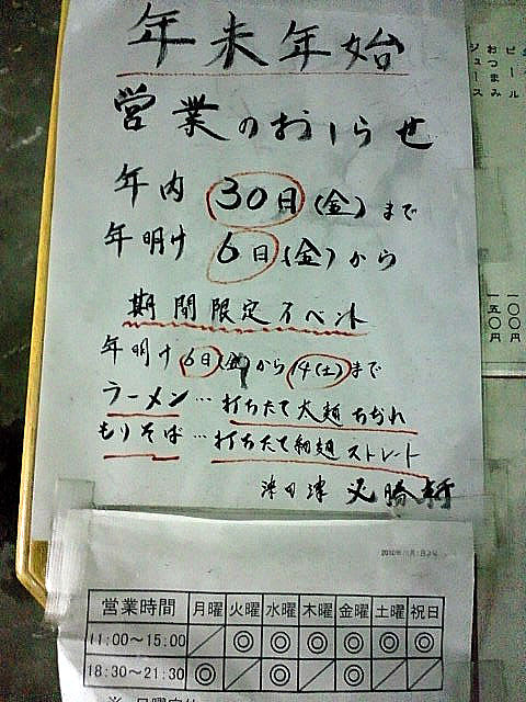 年末は30日(金)までの営業。 最終日は昼&夜営業ですね。